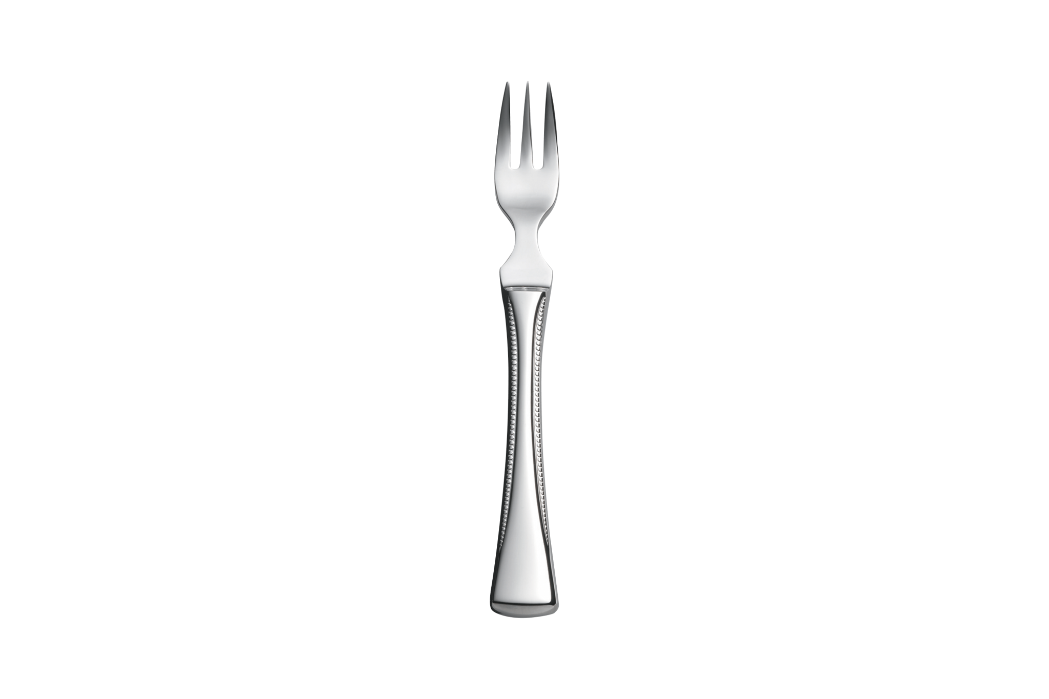 水玉 ボール(先端)とハンドルの「つなぎ」をいかに美しく見せるかにこだわったデザインです。女性が真珠のネックレスを掛けたイメージです。 「トリオ」ブランド第一号カトラリーです。